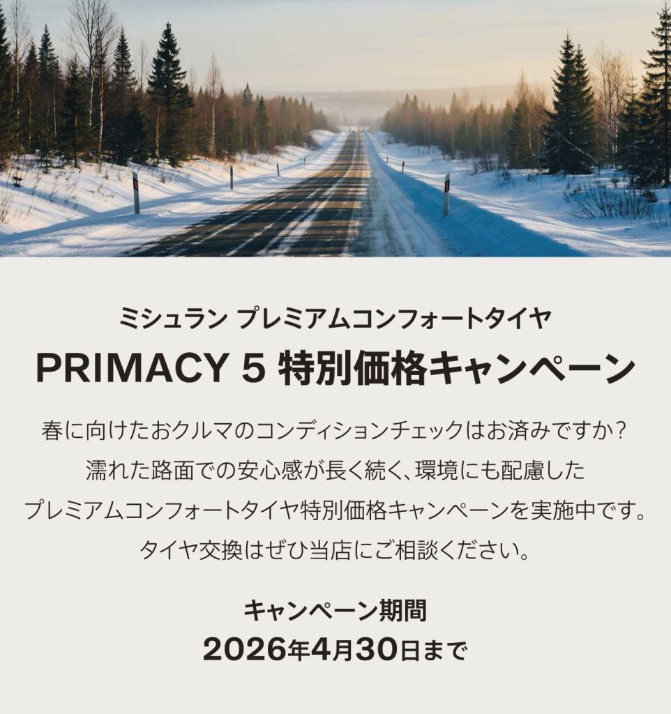 プレミアムコンフォートタイヤ特別価格キャンペーンを実施中です。