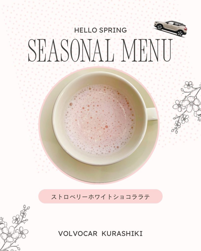 甘酸っぱいストロベリーの風味と 香り豊かなホワイトチョコレートを濃厚なミルクと合わせた ホワイトショコラ・ラテです♡